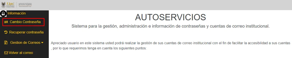 Si deseas cambiar la contraseña del correo institucional UPTC, en este apartado aprenderás a hacerlo: